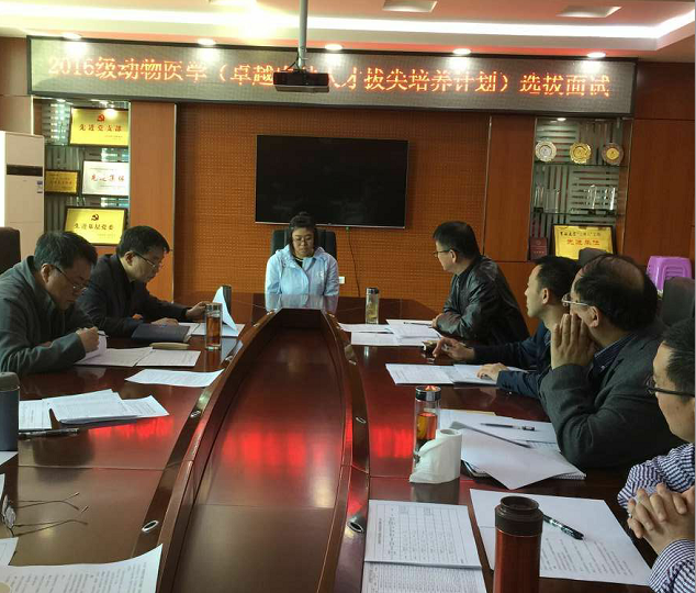 此次的评委有:五楼自拍 教务处副处长丁洪浩研究员、院党委副书记饶家辉副研究员、教学副院长柳巨雄教授、五楼自拍 督学王哲教授及丁壮教授、王新平教授、宋德光教授、李小兵教授等共9名评委。经过一天的面试,最后从46名同学中选拔出22名同学入选动物医学(卓越农林人才拔尖培养计划)试验班。