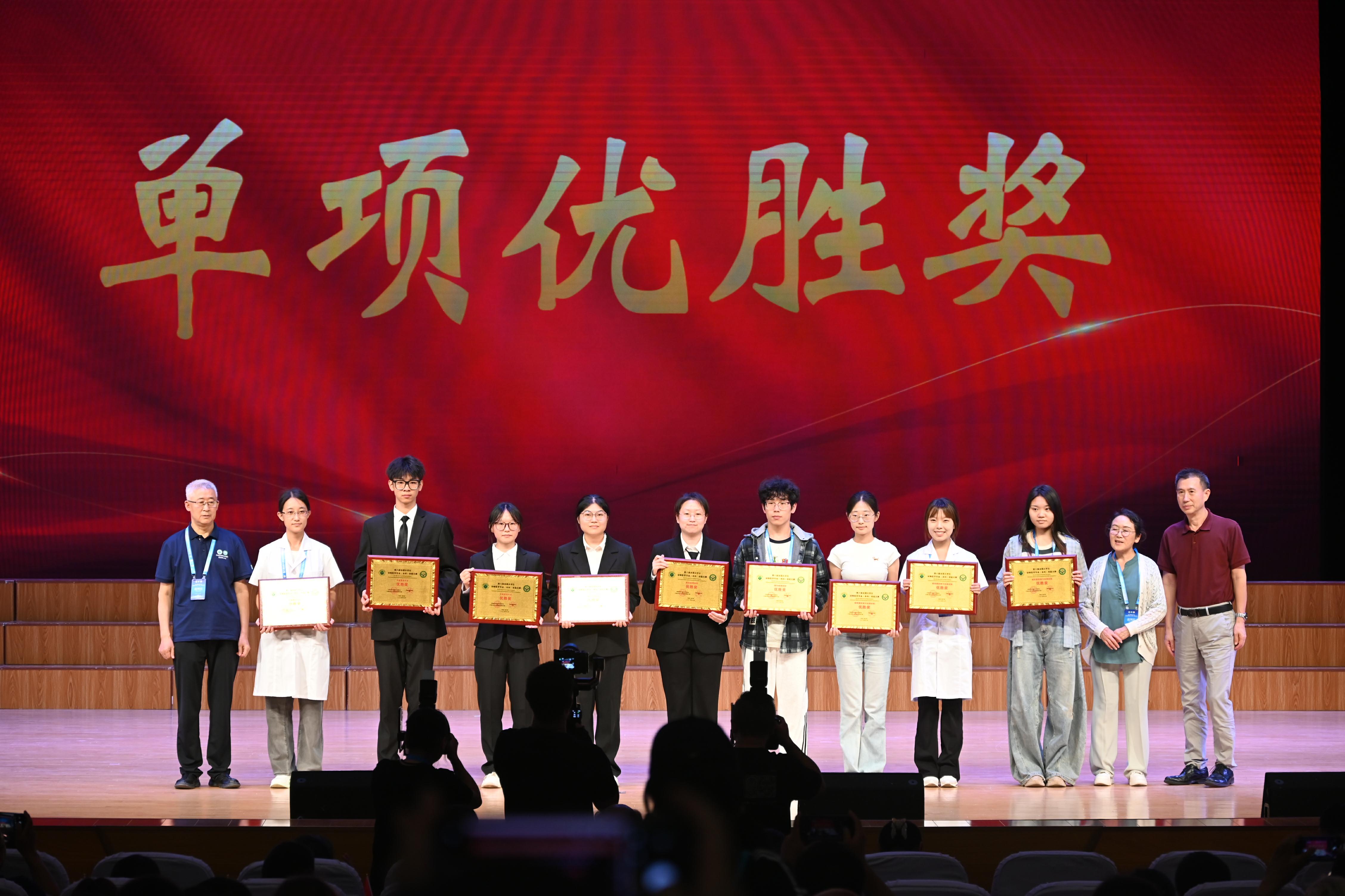实验教学中心组织各经验丰富、技术过硬的专业老师全程带教指导。谢光洪、张玉珠、肖冲、李颖、高超、张竞、石俊超等带教老师展开精准化、系统化、科学化、规范化的操作训练和阶段考核。老师们开展精准化、系统化、科学化、规范化的操作训练与阶段考核,反复推敲细节,采用鼓励式教学,从多方法宽领域进行指导,充分激发了同学们的专业兴趣和对实验动物的敬畏之心,让同学们在专业知识和实操技能上收获颇丰。赛场上,在邱家章副院长、宋斯伟主任的带领下,选手们凭借平稳的心态、饱满的热情、求实的态度和默契的配合,脱颖而出。据悉,本次大赛共有12所高校获团体特等奖,22所高校获团体一等奖,35所高校获团体二等奖,圣彼得堡国立兽医大学等2所国外高校获国际友谊奖。