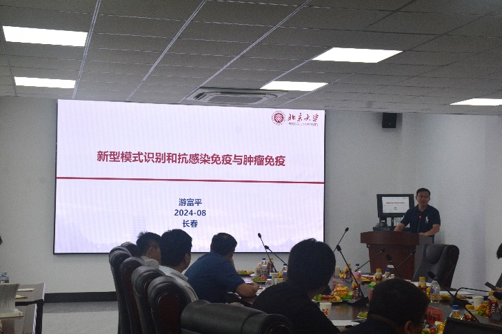 病原学系主任,系统生物医学研究所副所长,国家海外引进青年人才游富平教授,以《新型模式识别和抗病毒及肿瘤免疫》为题,介绍了新型模式识别和抗病毒及肿瘤免疫免疫系统对于识别病原生物感染的重要性,天然免疫作为对感染快速应答的防御系统,包含有多种模式识别受体(PRRs)。PRRs不仅够识别PAMP,也能够识别机体内在损伤相关分子模式(DAMP),包括肿瘤细胞、死亡的细胞和细胞应急释放的蛋白、核酸和脂类等。正常的天然免疫模式识别对清除感染和肿瘤,维持免疫平衡和机体健康不可或缺。而异常的天然免疫模式识别能够促进炎症因子风暴、自身免疫性疾病、肿瘤以及衰老的发生。游富平教授课题组关注抗病毒免疫、肿瘤发生和衰老过程中的免疫识别和异常调节的分子机制,并为相关疾病的治疗提供潜在靶点,取得了一系列研究成果。