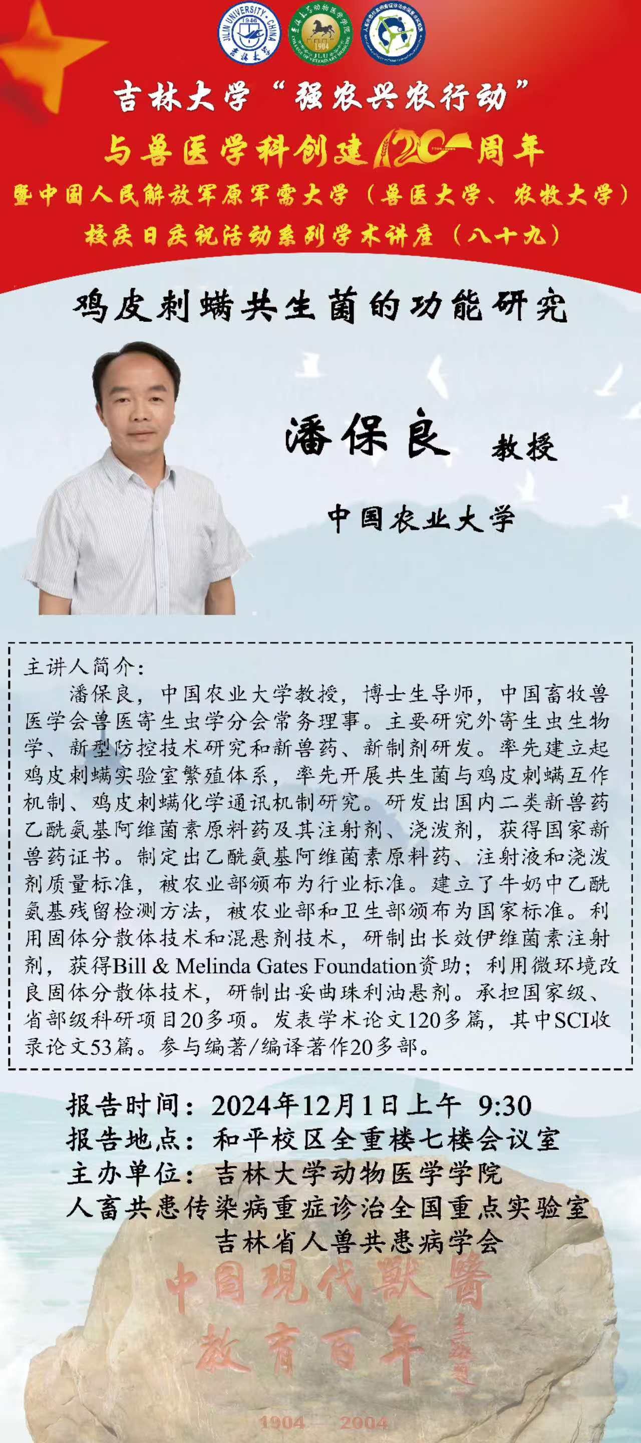 五楼自拍 “强农兴农行动”与兽医学科创建120周年暨中国人民解放军原军需大学(兽医大学、农牧大学)校庆日庆祝活动系列学术讲座(八十九)