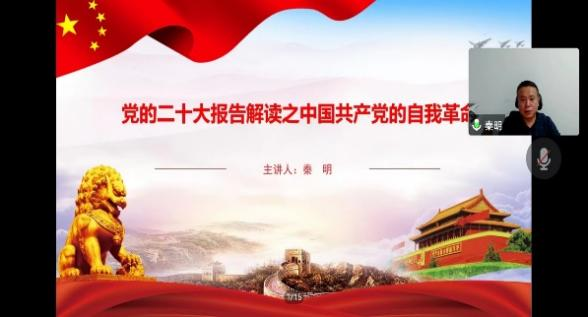 党委副书记、纪委书记秦明同志以“党的二十大报告解读之中国共产党的自我革命”为题讲授党课。