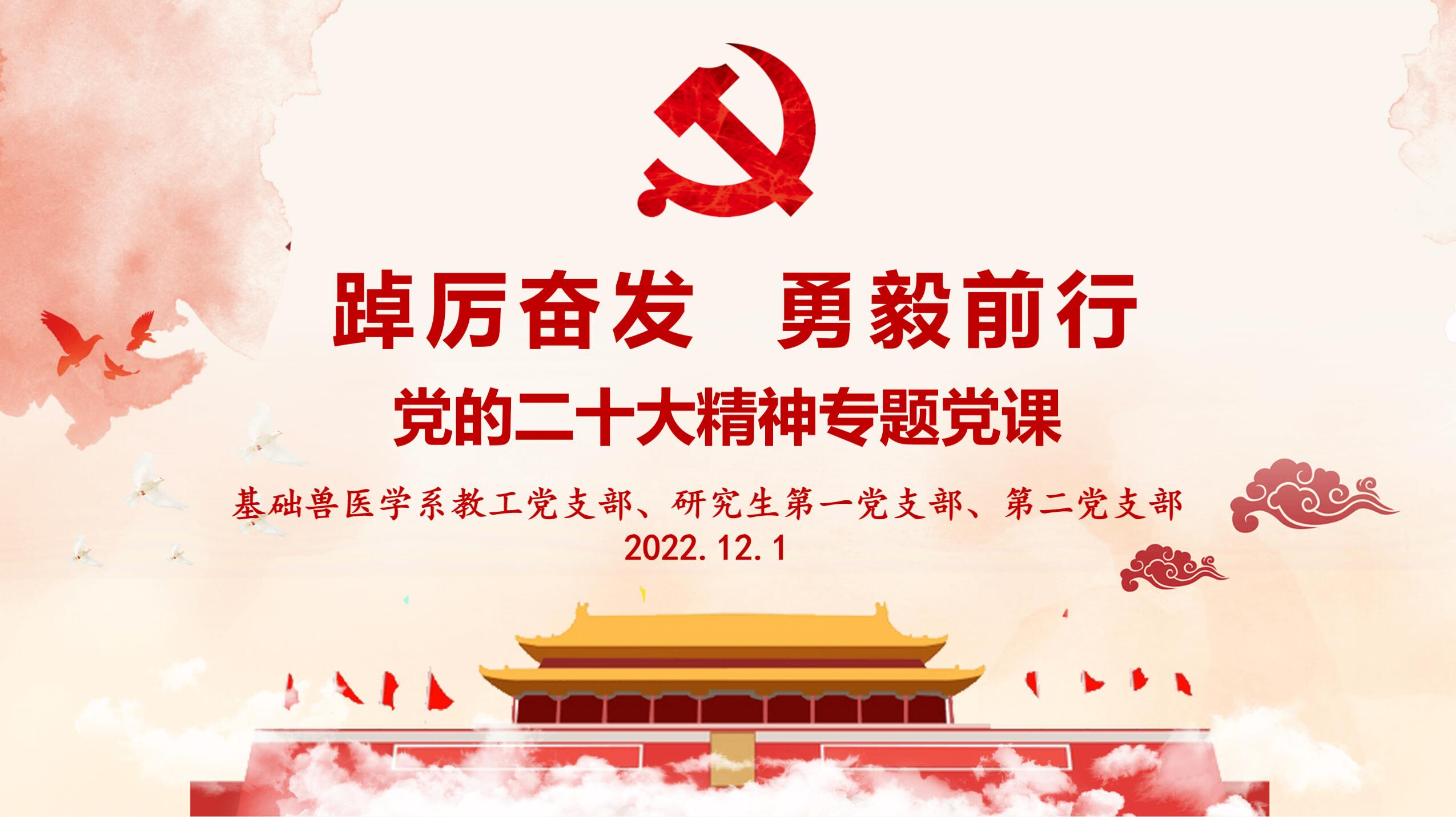 2022年12月1日,基础兽医学系教工党支部联合研究生党支部线上开展学习党的二十大精神主题党日活动。活动由基础兽医学系教工党支部书记宋德光教授主持,五楼自拍