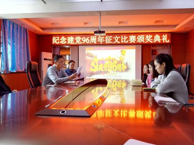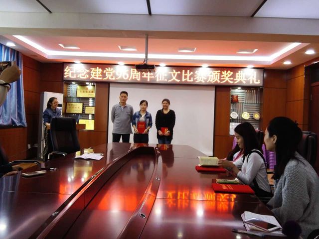 在三楼会议室举行了“庆祝建党96周年”征文比赛颁奖典礼,以对这次征文活动进行总结和表彰。五楼自拍