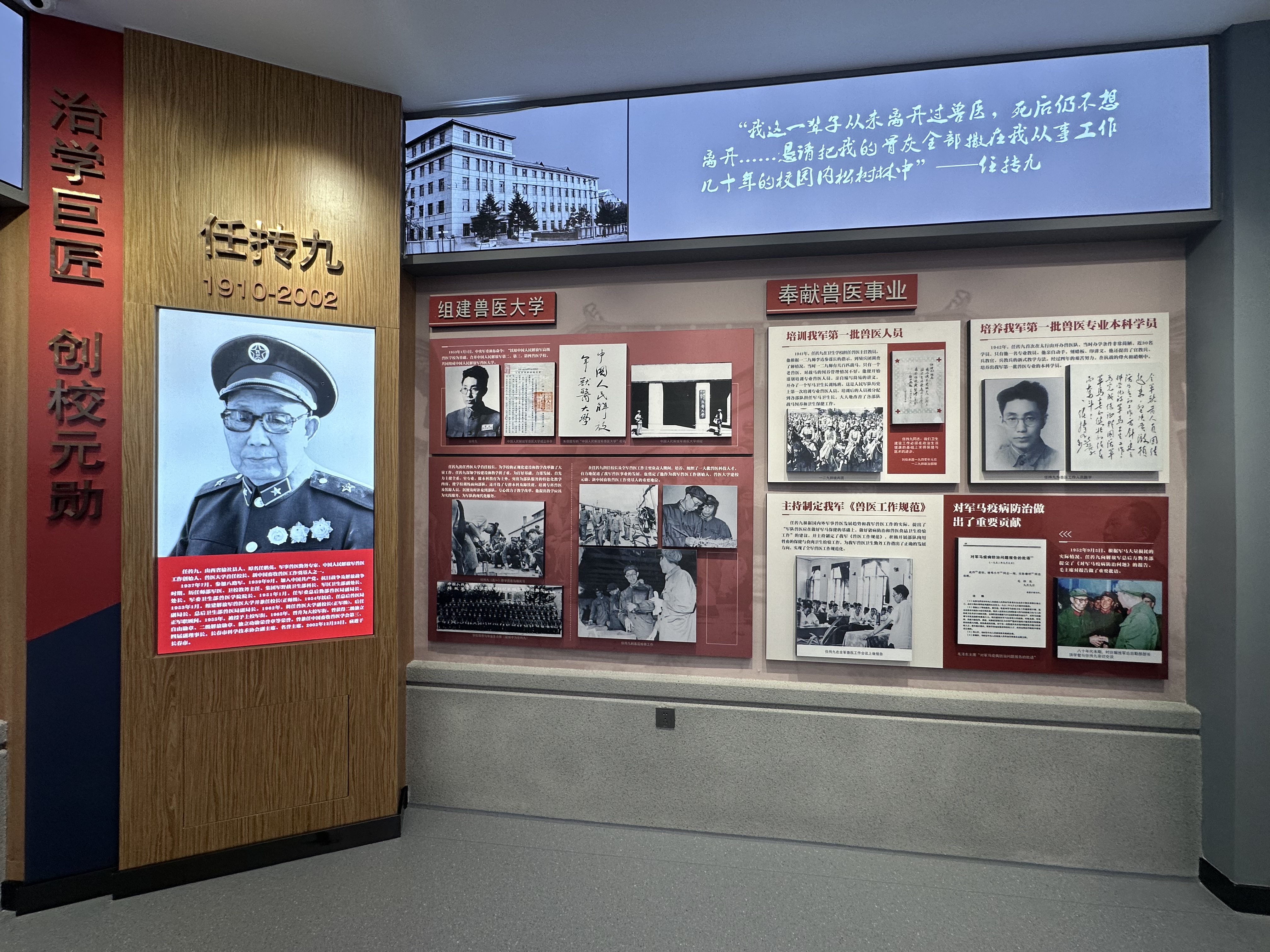 大家还重点参观了二楼农学区。一张张照片、一段段文字、一件件展品,都以历史的角度诉说着兽医先贤们艰苦奋斗的足迹,勾勒出一幅幅顽强拼搏、踔厉奋发的壮美画卷,殷震、费恩阁、郑兆荣等学术大师的工作场景仿佛就在眼前。