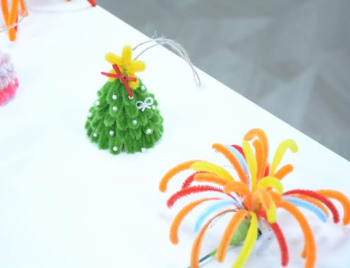 活动现场,编织材料和工具一应俱全,扭扭棒、编织线等材料整齐摆放,供同学们自由选择。参与者根据个人兴趣分成多个小组,有的编织出可爱的小恐龙,憨态可掬;有的制作出温馨的圣诞树,节日氛围浓厚;还有的则编织出优雅的郁金香和精致的烟花棒;更有同学积极发挥想象力,动手创作属于自己的独特作品。每一件作品都凝聚着同学们的智慧和心血,也展现了他们对美好生活的向往和追求。