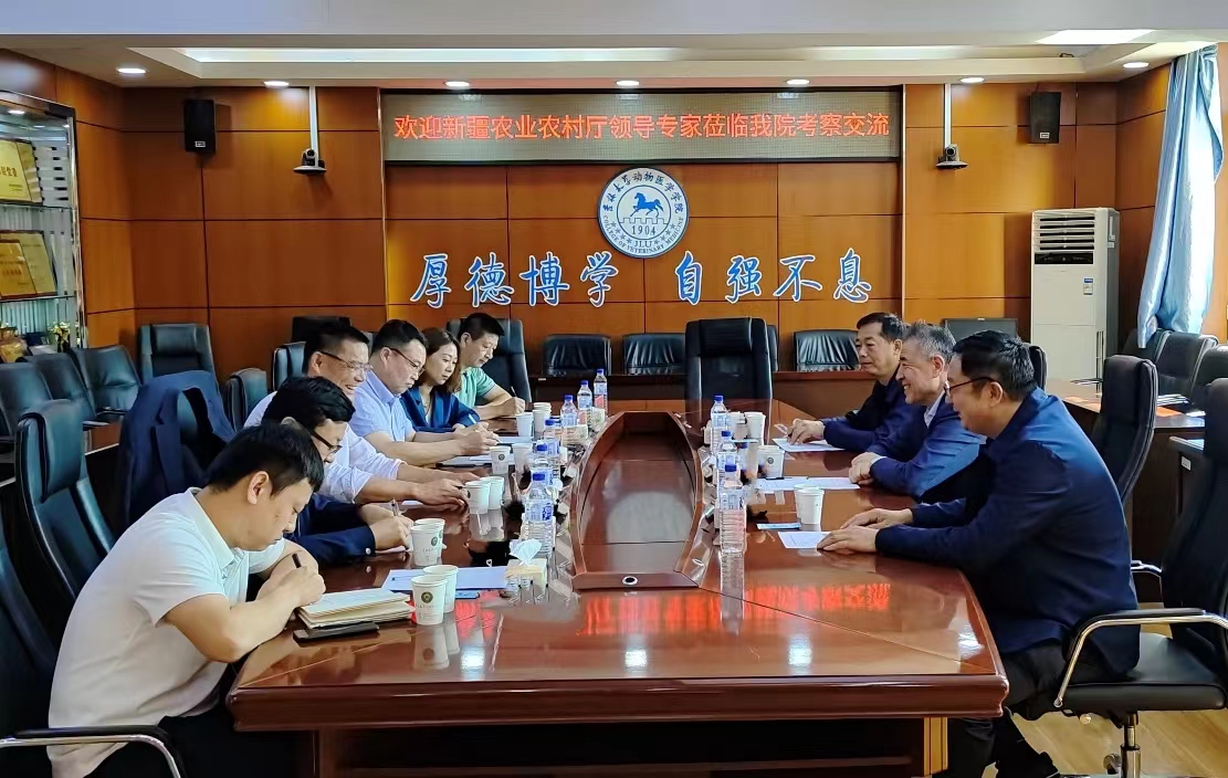 人才优势进一步完善基层兽医站素质能力,加强乡镇能力建设,更好地支撑和服务新疆农业农村发展。金山处长就新疆农业产业技术服务体系展开讲解,并深入探讨了双方可能开展的合作方向,实现互利共赢。随后,与会双方围绕科技服务体系、平台建设、人才培养、产业技术体系等方面进行了深度交流。
