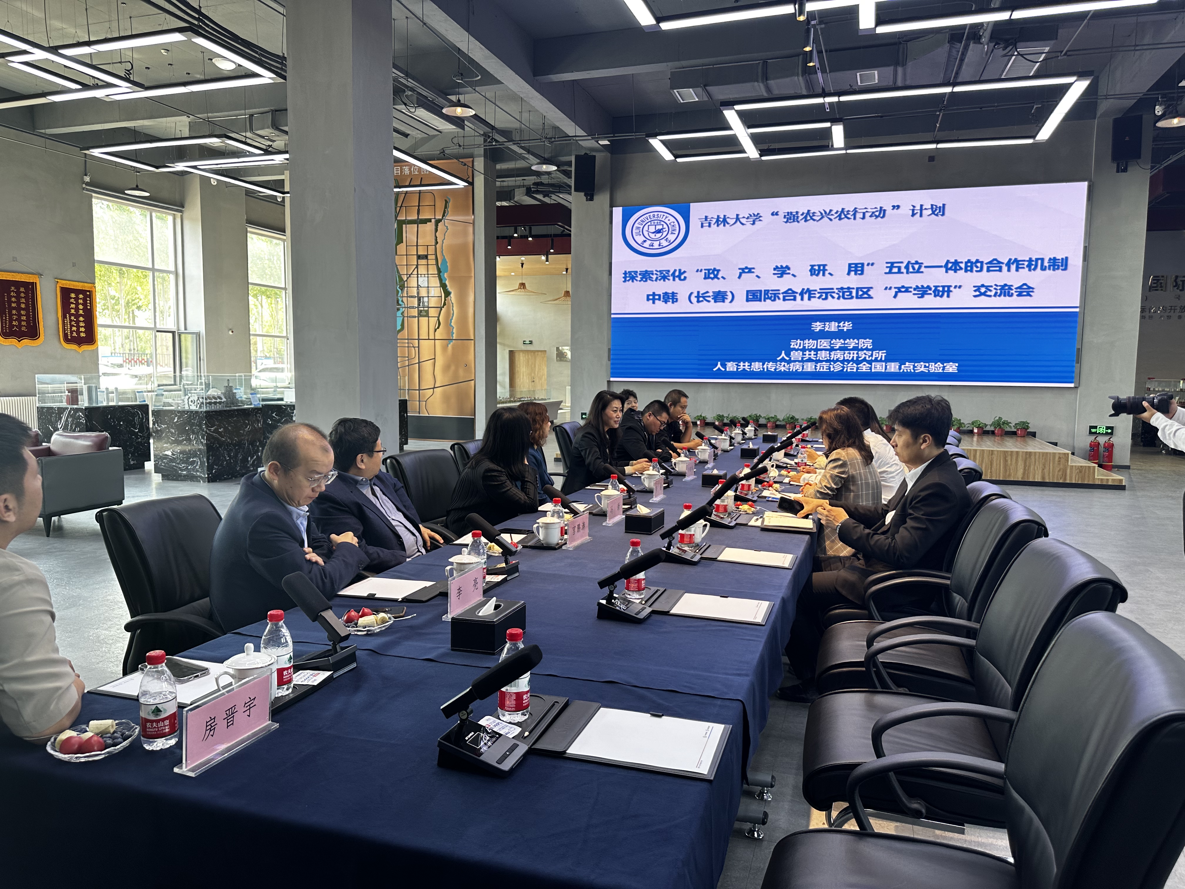 院长李建华教授领衔,基础兽医系主任王建锋教授、预防兽医系主任冯新教授、农业部岗位科学家宫鹏涛教授、兽药GCP办公室主任邓彦宏副教授,科研办主任李赫副研究员、科研办张茜老师等与会出席。同时,中韩示范区招商一局局长王昕、中韩示范区科技工信局科学技术科负责人郭虹冰、中韩示范区科技工信局李威、北京中民康泰生物科技研究院院长李亮、长盛运营公司副总经理李鹏、长荣集团双创顾问杨志刚参与了此次活动。