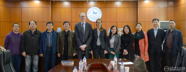 / 2016-042016年4月8日,德国吉森大学中国事务代表罗宾.亨利教授、国际办公室主任沃尔茨.朱丽亚女士及中国事务协调员程严女士一行3人来五楼自拍 访问交流。