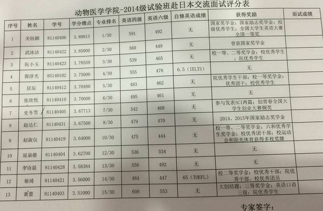 专家组面试最终确定6名同学参加交流与培训:关钰颖、武冰洁、郭淳光、居辰、史冬雪、李诗晨;