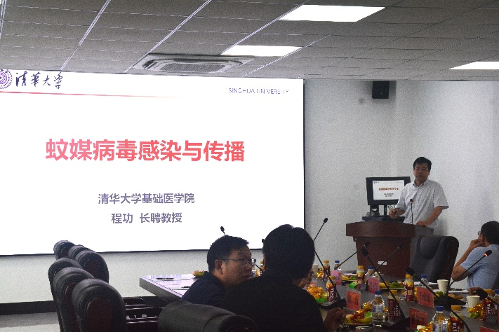 党委书记程功教授以《蚊媒病毒感染与传播》为题,介绍了贸易全球化、全球变暖和人类行为对环境影响愈发严重的情况下,蚊媒传染病的传播流行呈明显上升趋势,成为人类必须面对的重大生物安全挑战。并全面介绍了蚊媒病毒在自然界中传播流行的生物学原理,从蚊媒病毒、宿主及人体三个层面详述了病毒传播的分子机制及潜在干预策略,对预防未来新发突发蚊媒传染病有重要意义。