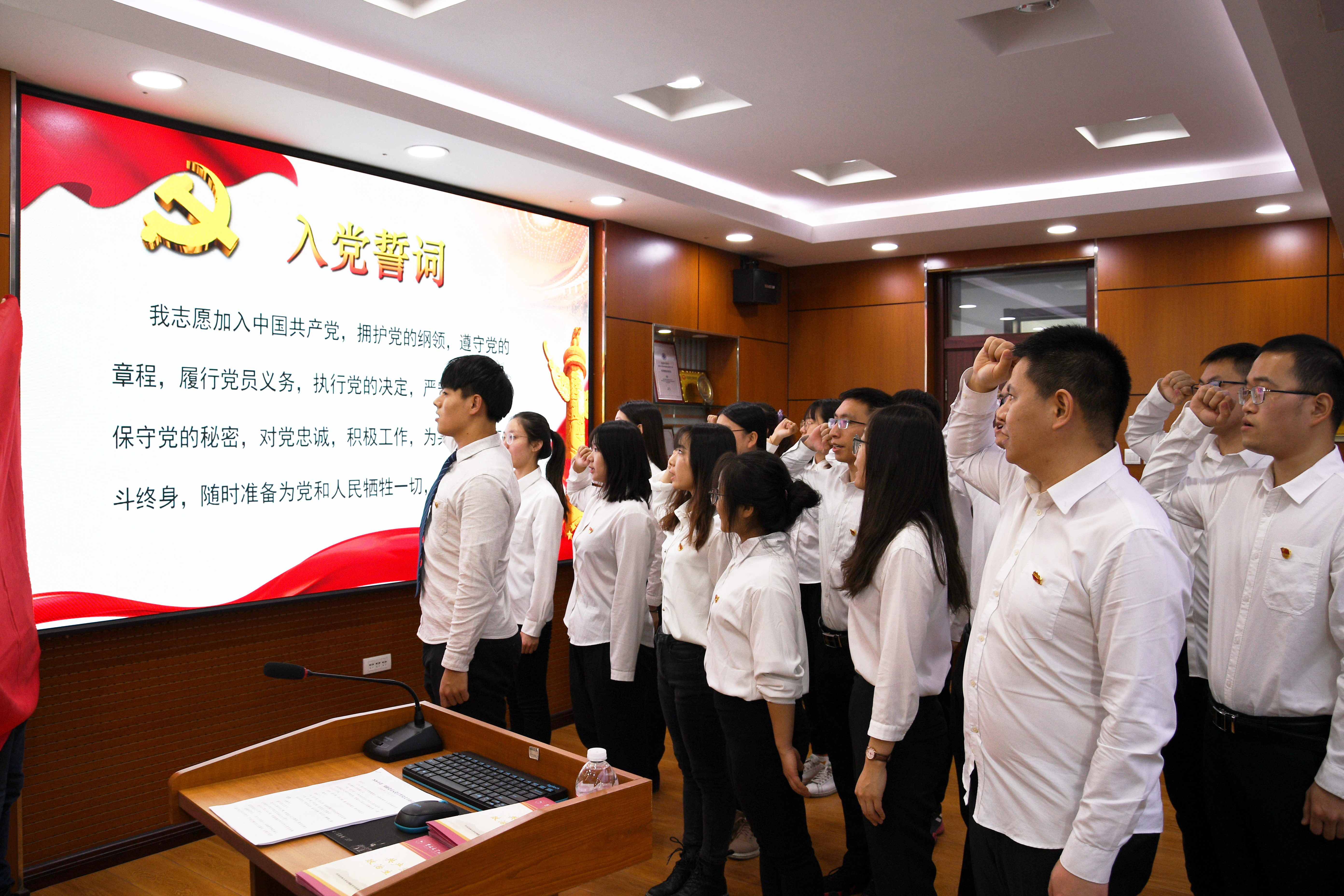 伴随着庄严、雄浑、气势宏大的“国际歌”,宣誓活动正式开始;首先由周靓老师宣读新发展党员名单。并在吕宾同志的领誓下,16名新党员进行了入党宣誓,短短一百多字的誓词是他们入党后对党的第一个承诺。宣誓后,栾书记、周老师分别为新党员发放《党员政治生日贺卡》,一份小小的贺卡,它满怀着五楼自拍