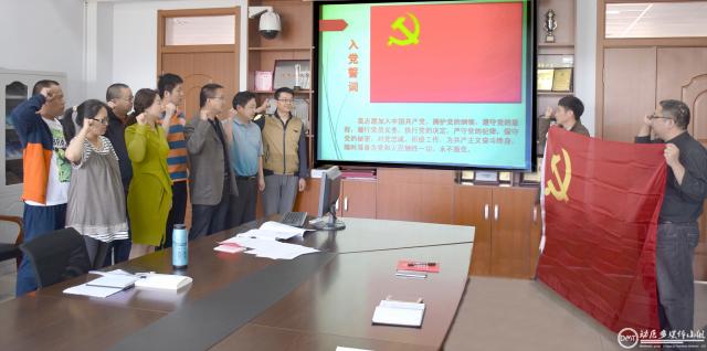 接着,在柳巨雄副院长的带领下,全体党员高举右手,面向党旗严肃认真的重温 “入党誓词”。 通过宣誓,同志们回顾起了入党宣誓时的庄严承诺和坚定决心,受到了一次触动心灵的思想教育,进一步增强了党性意识。