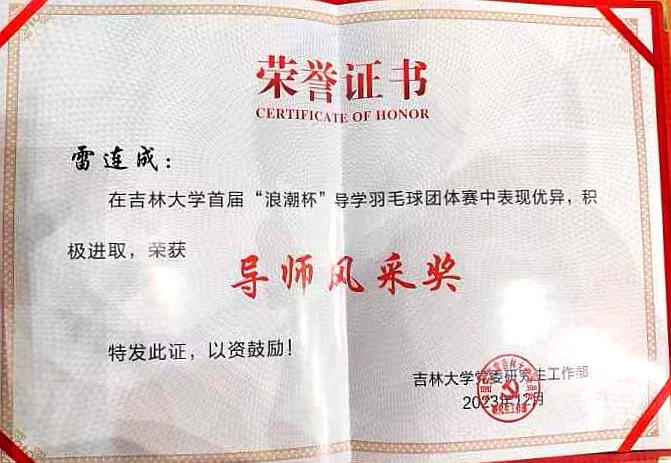 雷连成老师荣获“导师风采奖”,五楼自拍
