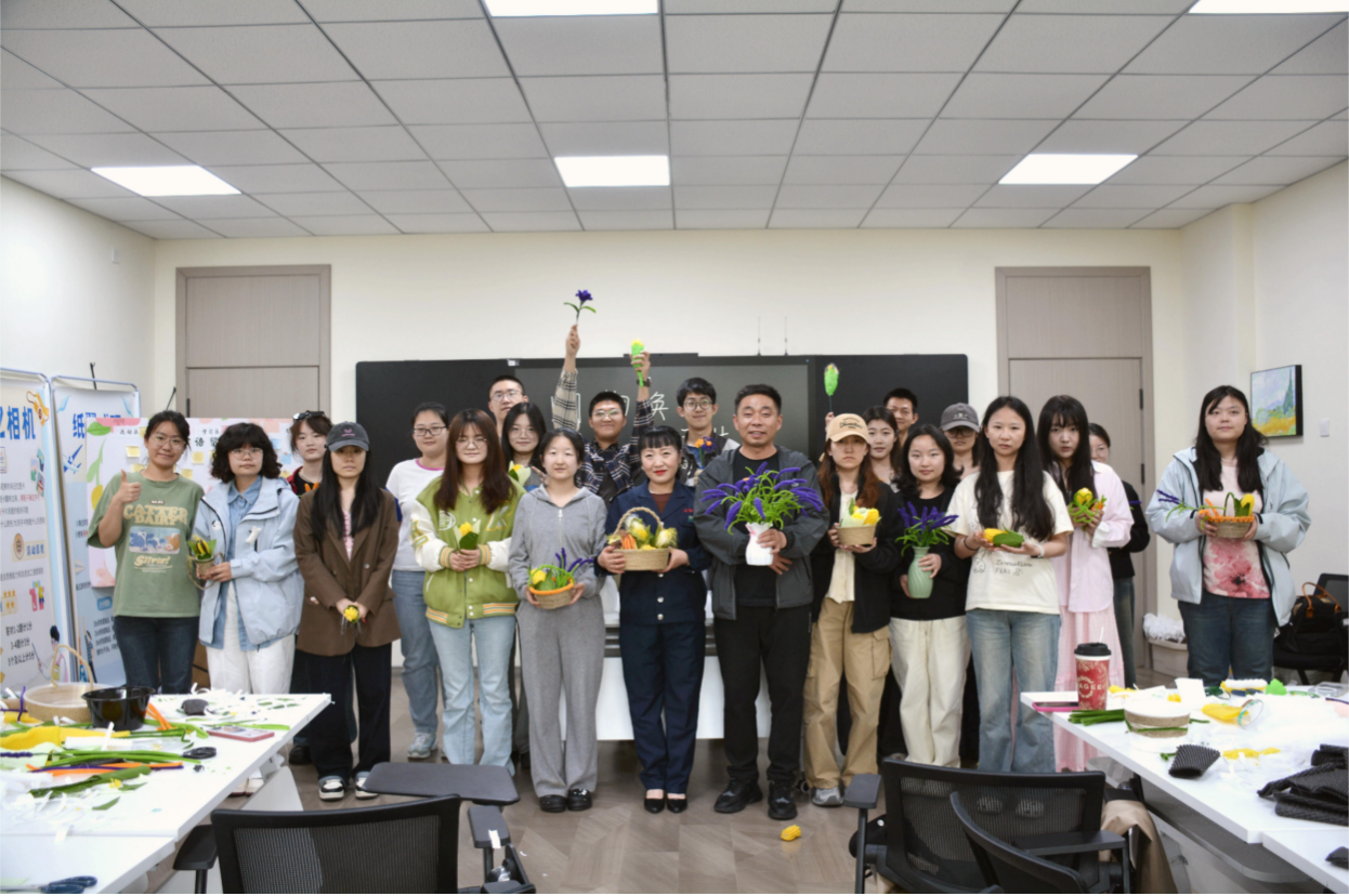 活动过程中,同学们不仅享受到了手工艺术的乐趣,还感受到了手工带来的心灵治愈。活动最后,大家一起合影留念,当快门定格在同学们与后勤员工共同举着作品的笑脸时,这场创意之旅早已超越了手工制作本身,成为一堂关于生活美学的实践课。