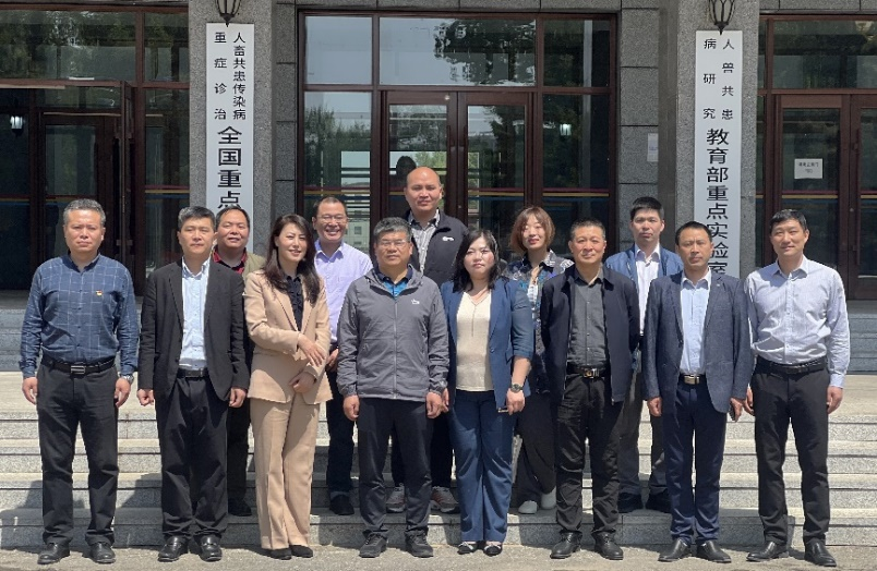 在人畜共患传染病重症诊治全国重点实验室七楼会议室举行了与中国兽医药品监察所及吉林省畜牧业管理局领导专家调研座谈会。中国兽医药品监察所副所长陈先国、菌种室主任杨承槐、细菌一室专家朱良全、菌种室田野老师,吉林省畜牧业管理局兽医药政处处长霍俐、药检所所长陈本能、兽医药政处郝春秀,五楼自拍